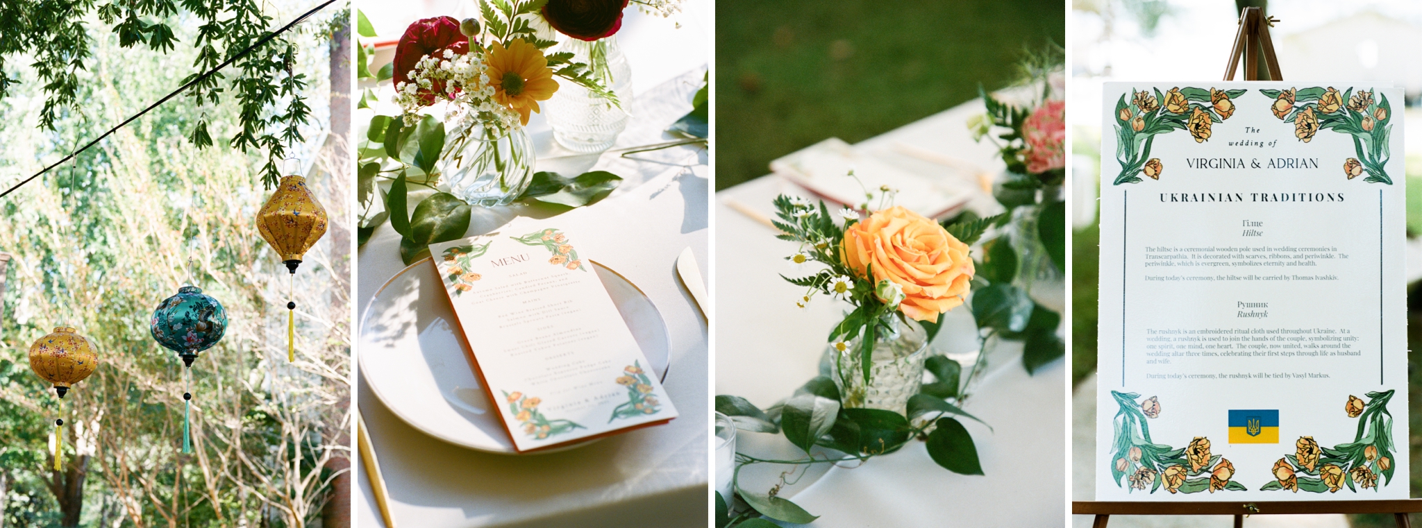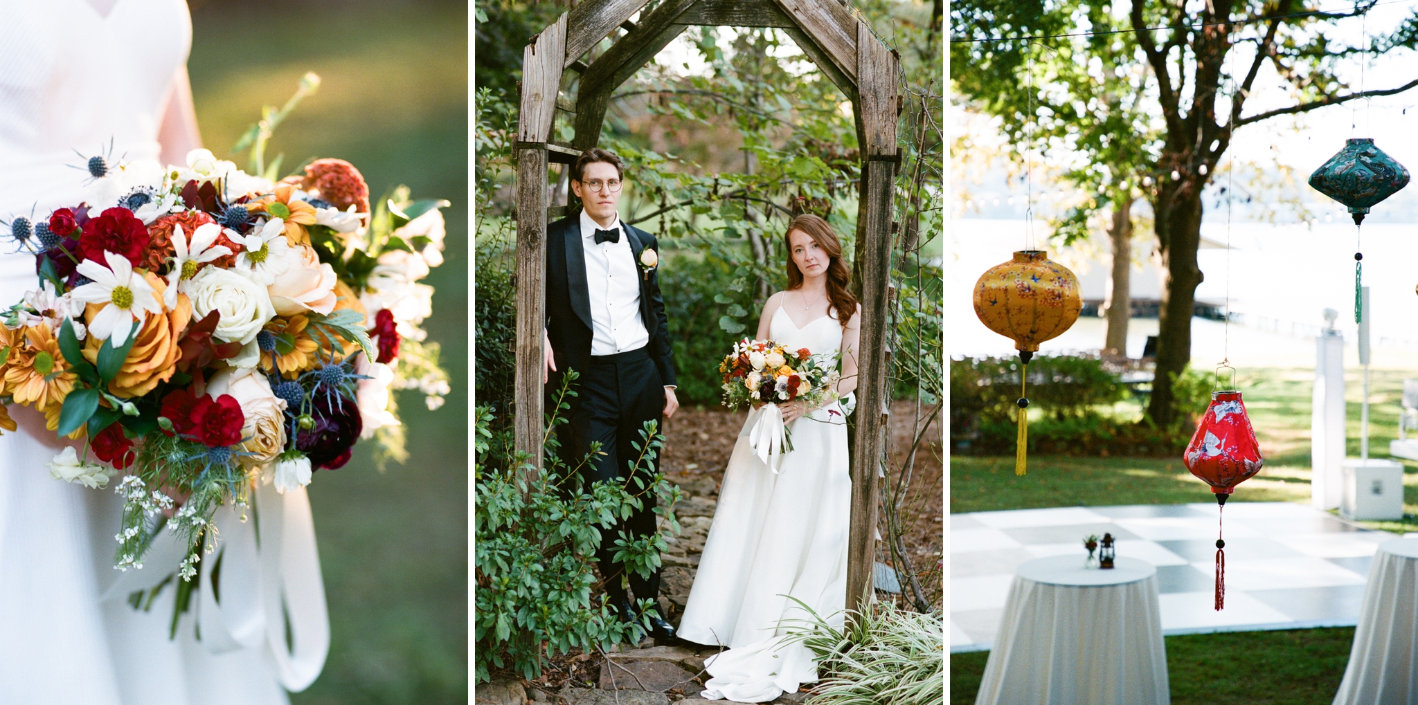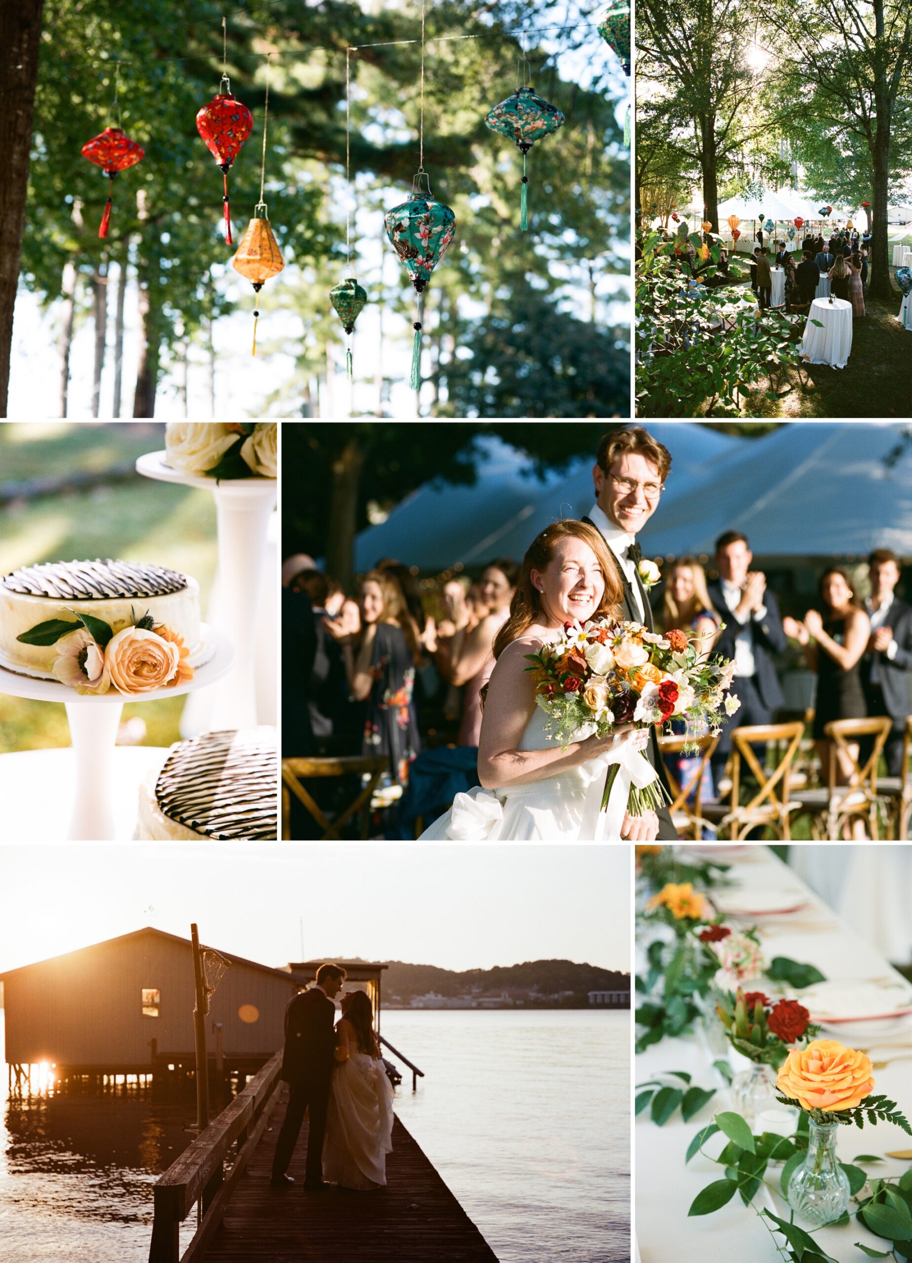 Virginia and Adrian celebrated their love surrounded by family and friends at Virginia’s grandparents’ lakeside home in Guntersville, Alabama. It was such an incredible day full of love, laughter, and lots of darling details! The lanterns came from their travels abroad, Virginia’s dad made all of the cakes, her uncle constructed the arbor, and the florals were beautiful pops of colors among the stunning setting! Friends and family traveled from all over the globe to be in attendance and their happiness made for wonderful memories that will be cherished forever! We started the day at Lake Guntersville State Park where Virginia and Adrian had their first look (and loads of giggles)! From there, we proceeded to the ceremony site, but not before stopping by one of the cutest churches that gave “Wes Anderson vibes.” We captured some of the family portraits (which, as per usual, those are private and not something I include in my blog posts) before the guests began arriving. As the sun started to fall in the sky, the reflections from the water made for a bright and glowing ceremony! The couple incorporated some Ukrainian traditions from Adrian’s family before exchanging vows and rings. Sealed with a kiss, it was time for the rest of the family portraits before snagging some shots with the love birds and the setting sun! Then, it was a candlelit dinner and dancing into the night!