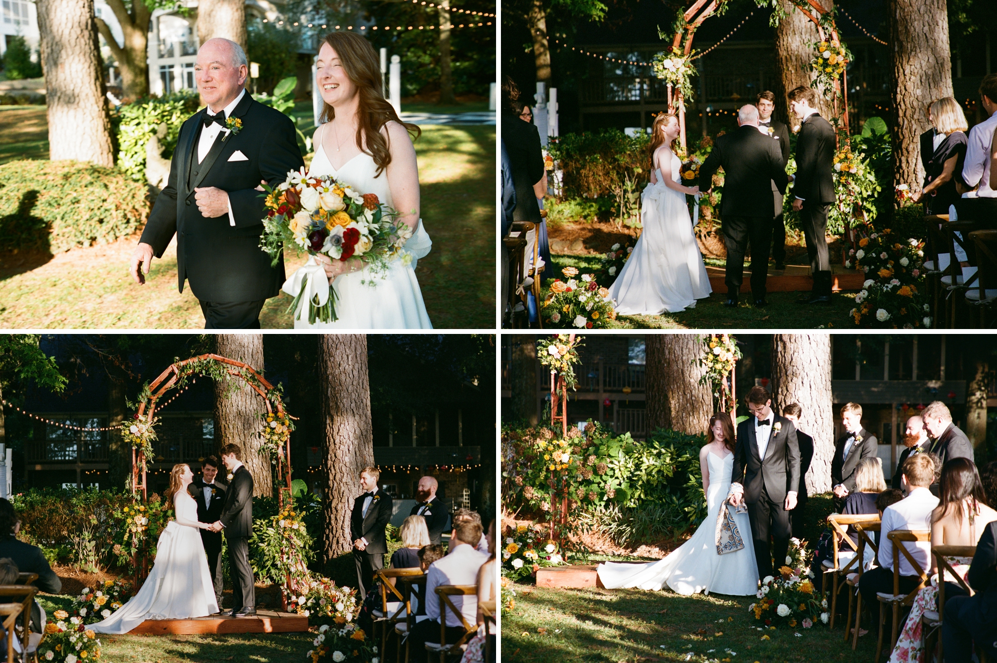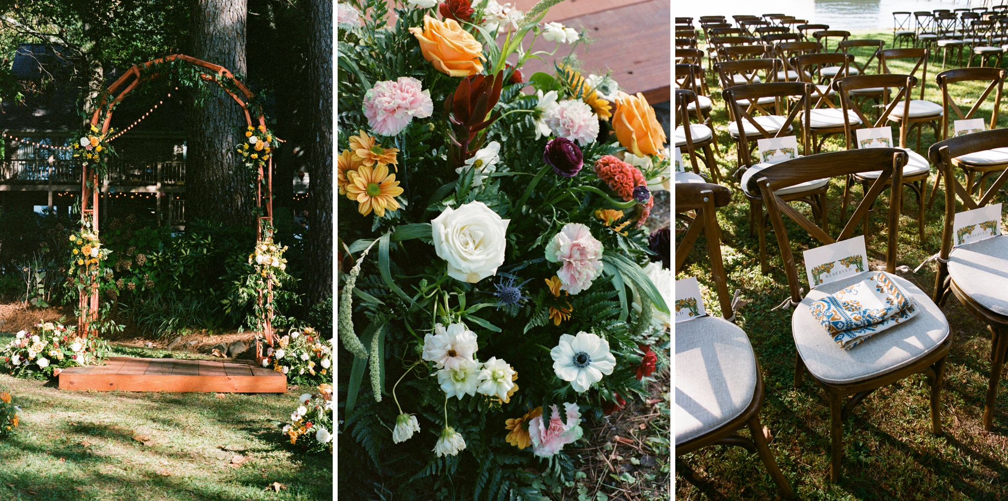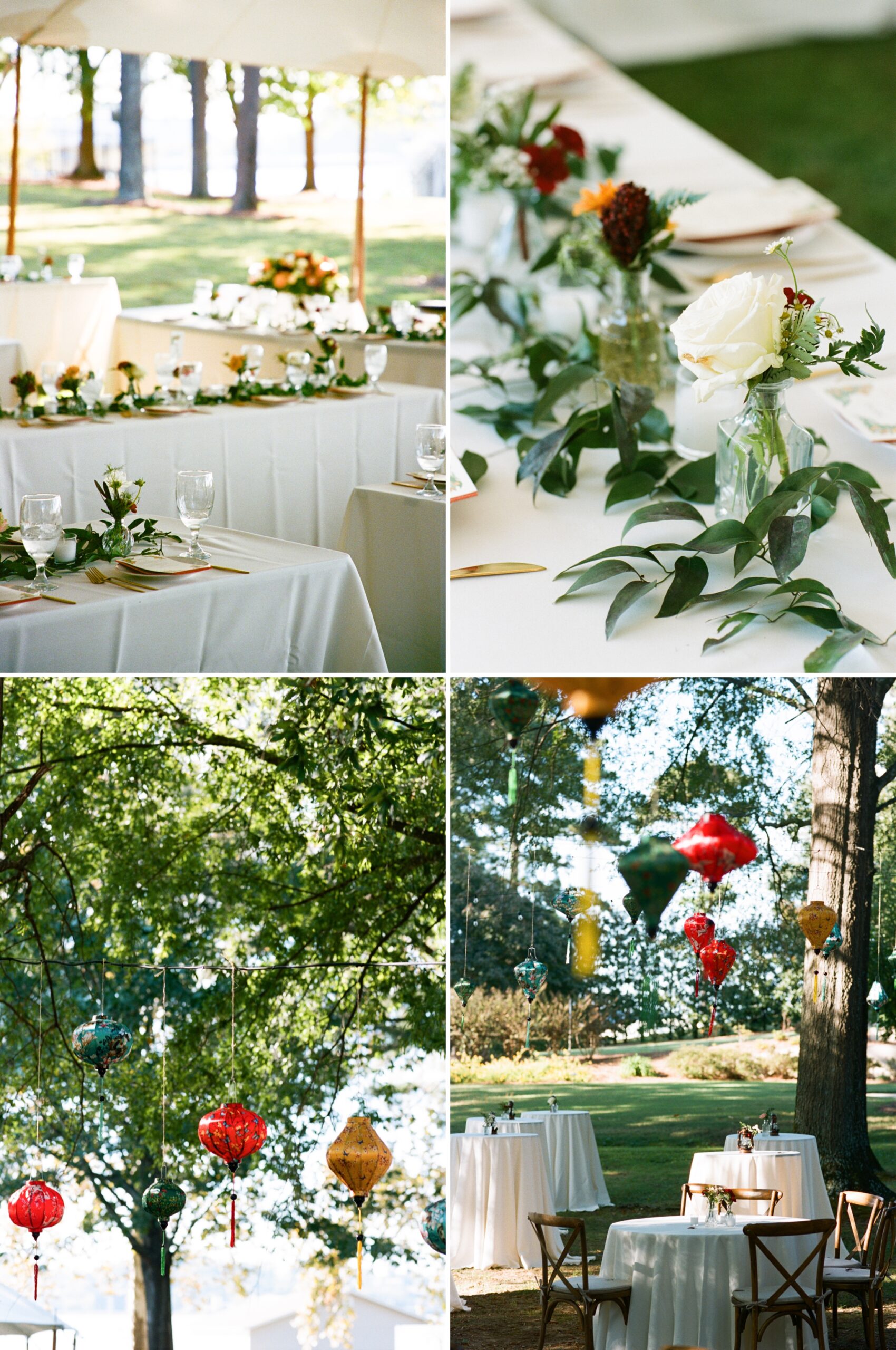 Virginia and Adrian celebrated their love surrounded by family and friends at Virginia’s grandparents’ lakeside home in Guntersville, Alabama. It was such an incredible day full of love, laughter, and lots of darling details! The lanterns came from their travels abroad, Virginia’s dad made all of the cakes, her uncle constructed the arbor, and the florals were beautiful pops of colors among the stunning setting! Friends and family traveled from all over the globe to be in attendance and their happiness made for wonderful memories that will be cherished forever! We started the day at Lake Guntersville State Park where Virginia and Adrian had their first look (and loads of giggles)! From there, we proceeded to the ceremony site, but not before stopping by one of the cutest churches that gave “Wes Anderson vibes.” We captured some of the family portraits (which, as per usual, those are private and not something I include in my blog posts) before the guests began arriving. As the sun started to fall in the sky, the reflections from the water made for a bright and glowing ceremony! The couple incorporated some Ukrainian traditions from Adrian’s family before exchanging vows and rings. Sealed with a kiss, it was time for the rest of the family portraits before snagging some shots with the love birds and the setting sun! Then, it was a candlelit dinner and dancing into the night!