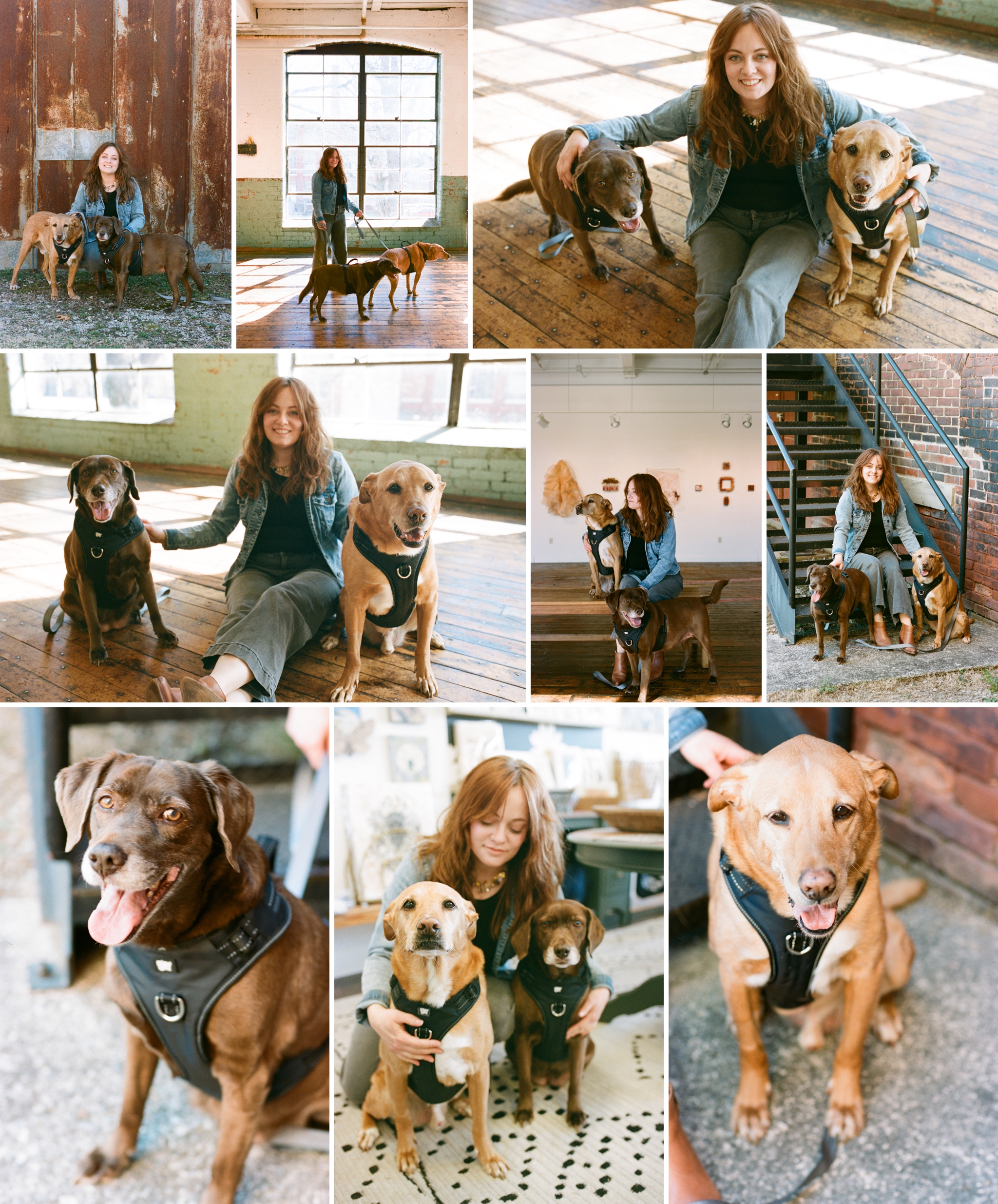 Stephanie and her pups! She’s a super talented artist here at Lowe Mill!